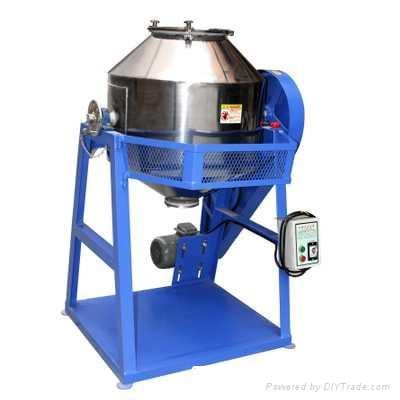 360 degree rotary batches Mixer with rapid speed can mix evenly with high efficiency. It is widely adopted in industries of plastic, powder metallurgy, chemical, foodstuff, etc. Stainless barrel and mixing blade minimize material contamination. Height-adjustable support frame, universal feet wheel and brake, are easy for you to adjust and move. 15 minutes auto-stop function makes your operation more convenient. Features: